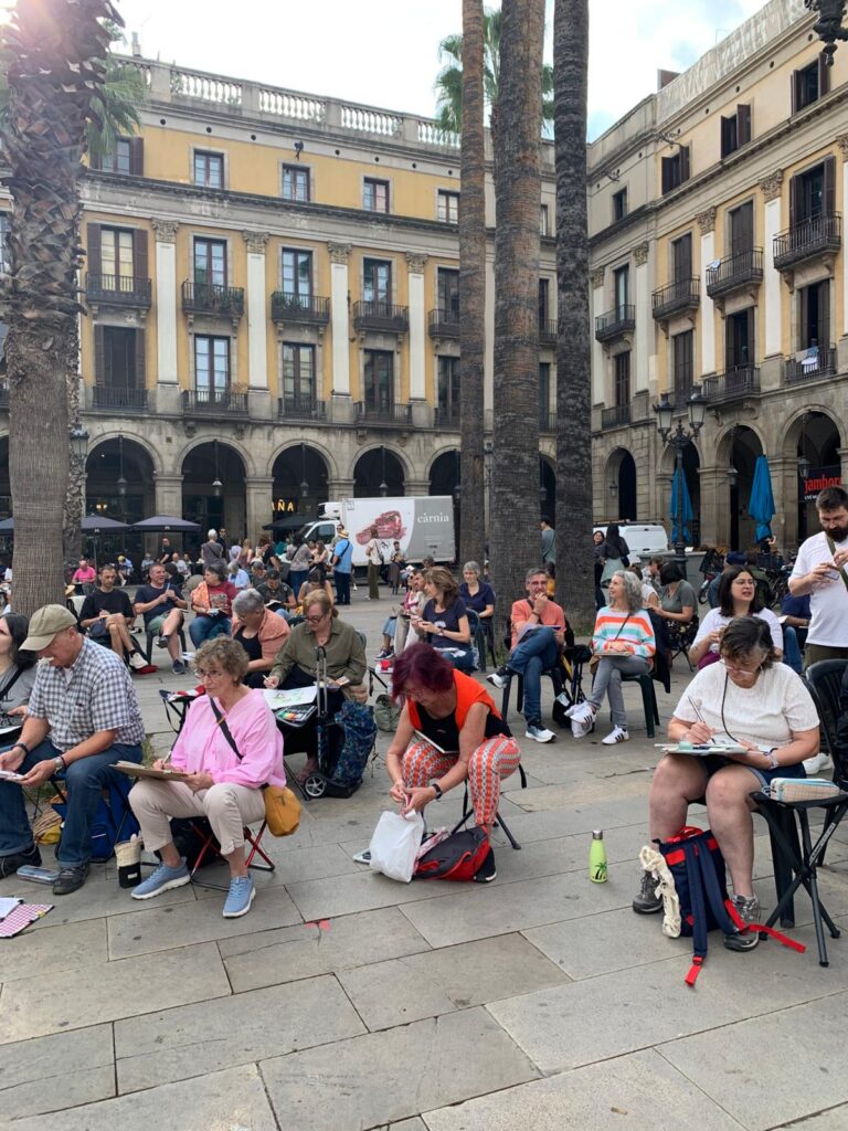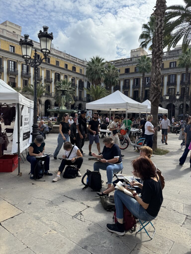 La trobada va ser un èxit! Vàrem gaudir de la xocolata, de les galetes i vàrem omplir les llibretes de dibuixos de la Plaça Reial!