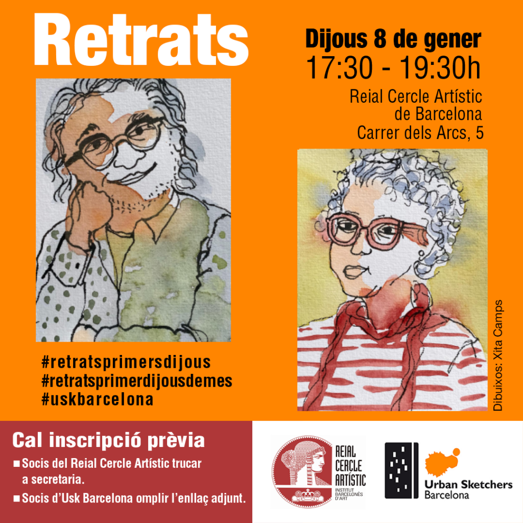 Reial Cercle Artístic, retrats Retrats del mes de gener Només per a socis d’USk Barcelona amb inscripció prèvia a través de formulari i socis del Reial Cercle Artístic de Barcelona, informació a secretaria Anterior Bones Festes i per un 2026 ple de dibuixos! També us pot agradar Retrats de desembre al Reial Cercle Artístic Dimarts, 2 d'abril de 2024 Celebrem els 10 anys d’usk Girona, dibuixant amb tu Dimecres, 20 de setembre de 2023 Festes d’Arquitectura d’Horta-Guinardó, trobada + Taller d’sketching per a adults. Quiosc de la Font d’en Fargas, 9 de juny, 11h Dissabte, 8 de juny de 2024
